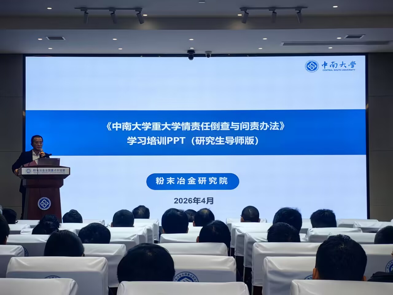 重大学情责任倒查与问责办法》开展专题讲解。他结合政策要求,细致拆解了重大学情责任倒查与问责的核心原则、实施流程,明确了研究生导师在学情管理中的具体职责与工作要求。黄曦副书记强调,导师要切实履行第一责任人职责,主动识别学情异常表征,深入排查问题成因,及时向学院学生工作负责人汇报相关情况;要全方位关心学生成长,精准掌握学生的学习状态、心理状态、生活状况及社会活动情况,主动回应学生合理诉求,若出现突发情况,务必第一时间上报、妥善处置,确保学生身心健康与学业顺利推进。