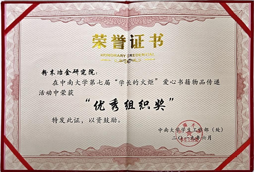 第七届“学长的火炬”爱心书籍物品传递 活动中荣获 “优秀组织奖”