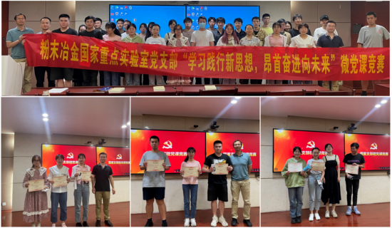 为进一步做好支部全体党员的革命传统教育工作,扎实深化支部学习教育成果,传承红色基因,提高党员干部担当作为能力,6月5日,粉末冶金国家重点实验室党支部在三一大楼409会议室举办了“学习践行新思想,昂首奋进向未来”微党课竞赛活动,出席会议的有罗行老师、陈超老师、宋淼老师和周学凡博士以及全体粉末冶金国家重点实验室党支部成员,本次活动由党支部副书记王琦均担任主持人。
