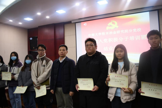 分党校第44期入党积极分子培训班结班典礼在粉冶院工程会议中心成功举办。粉冶院副院长、分党校副校长甘雪萍,培训班班导师贺林豪以及全体学员参加了此次结业典礼。结业典礼由贺林豪老师主持。