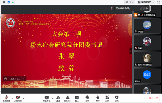 分团委、学生会及研究生会于2022年6月5日在线上举行了2021—2022学年第二学期述职评议大会。粉冶院分团委书记张翠老师、辅导员彭仕亨老师、傅航老师、贺林豪老师、林钰杰老师、团学会全体成员以及由各班推选的述职评议代表参加会议。本次会议由高田创主持。