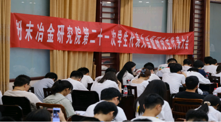 第二十一次学生代表大会暨研究生代表大会在院工程会议中心隆重召开。出席本次大会的有党委副书记甘雪萍、副院长宋旼、学工办主任孟尚儒、分团委书记张翠、学生会指导老师傅航、研究生会指导老师彭仕亨、各年级辅导员陈林、贺林豪、林钰杰,以及粉冶院149名学生代表。大会由余亦丁同学主持。
