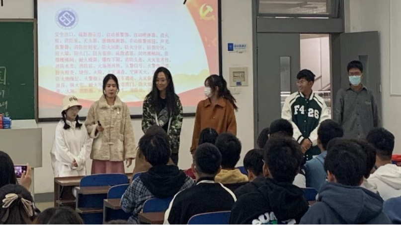 活动的第二个项目,是团支书带领同学们进行消防安全有关知识的学习。学习内容共分为三个部分:消防日的由来及介绍,日常消防安全知识普及,消防安全知识的有奖竞答以及有同学们表演的“逃生演习”小戏剧。同学们积极做好学习笔记,并且积极参与到知识竞答中,通过输入和输出相结合的方式,同学们巩固了消防知识。