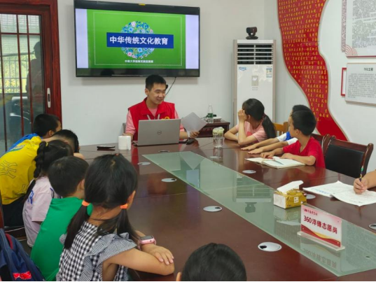 下午十五时,支教团进行了道德修养相关的讲解。支教团成员组织学生们观看视频、知识竞答,从爱国诚信等多角度强调了崇德尚善、以德为尊自古以来是中华民族的优良传统。学生们也表示在未来的学习生活中会严格约束自己,从自身做起,从小事做起。