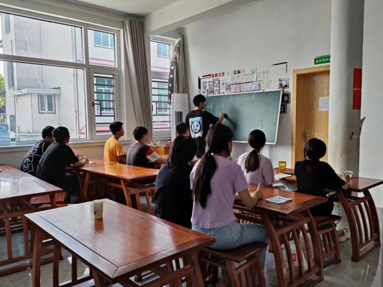志愿者冯星宇在教学七年级学生数学的第一堂课上,为同学们讲解了分式的计算,虽然天气炎热,但是同学们学习的热情不减。在课堂上,同学们认真听讲,积极作答,良好的学习氛围深深打动了志愿者们的心,也激发了志愿者们的热情。下午,志愿者唐晓璐为五年级学生带来了一场生动有趣的英语课堂,在唐老师温柔细心的教导下,同学们摒弃了羞涩,逐渐开朗起来,一阵阵的英语朗读声从石羊塘镇国学馆传出。忙碌的日子里,时间总是如白驹过隙,必赢亚洲