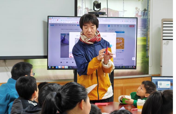 “星火重燃”支教队鼓励孩子们分享对劳动的认识,并向孩子们展示了长城、金字塔等人类劳动的杰出成果,让孩子们领悟到了劳动的重要性以及当今生活的来之不易。随后,“星火重燃”支教队组织孩子们折千纸鹤,在动手过程中让孩子们体会到劳动的快乐与收获的喜悦。