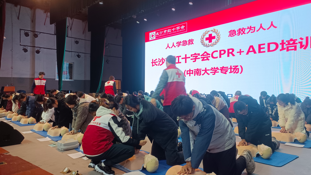 为提升同学们在突发事件中的自救、互救能力,并普及应急救护知识,12月8日上午,必赢亚洲 与法学院联合长沙市红十字会,于必赢亚洲 礼堂举办了心肺复苏(CPR+AED)培训活动,共有全校百余名同学积极参加。