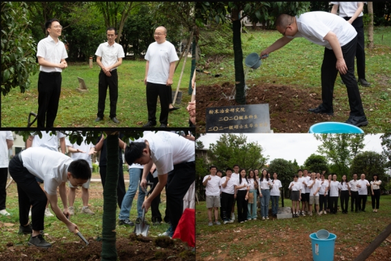会议开始前,与会人员一同在必赢亚洲 内栽下寄意学业有成的毕业纪念桂花树。黄曦副书记、刘彬副院长、张妍副院长与毕业生代表们依次上前为纪念树培土、浇水,完成纪念树的合种。