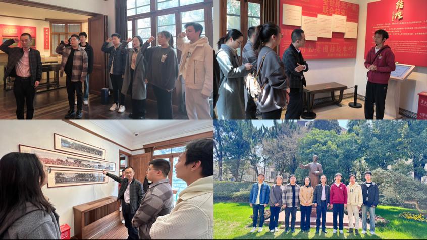 首先,团队前往位于杨浦区国福路51号的《共产党宣言》展示馆。从陈望道先生错把墨水当红糖的故事,再到旧居内展陈的各种版本《共产党宣言》,在复旦大学“星火”党员志愿服务队蔡薛文同学的讲解下,团队成员感受到了陈望道先生的智慧和家国情怀,深刻感悟了早期共产党人的艰辛奋斗历程,并在党旗前重温入党誓词。