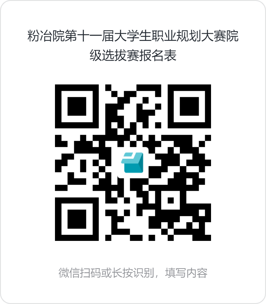备注:请意向参加学院选拔赛的选手11月19日前扫码填写参赛信息,后续将由工作人员邀请进通知群。并将个人生涯发展报告或简历+答辩PPT命名为XX赛道-年级-姓名-手机号”,11月221200前发送至[email protected]