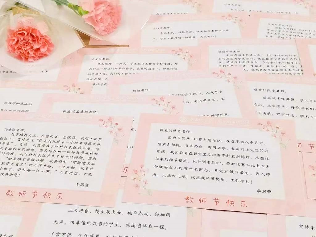 教师节前夕,院心助会成员向全体粉冶学子线上征集了与老师们有关的三行情书、合影、故事等,帮助同学们和老师增进感情的同时也收集到了许多老师与学生相处的“温馨瞬间”。