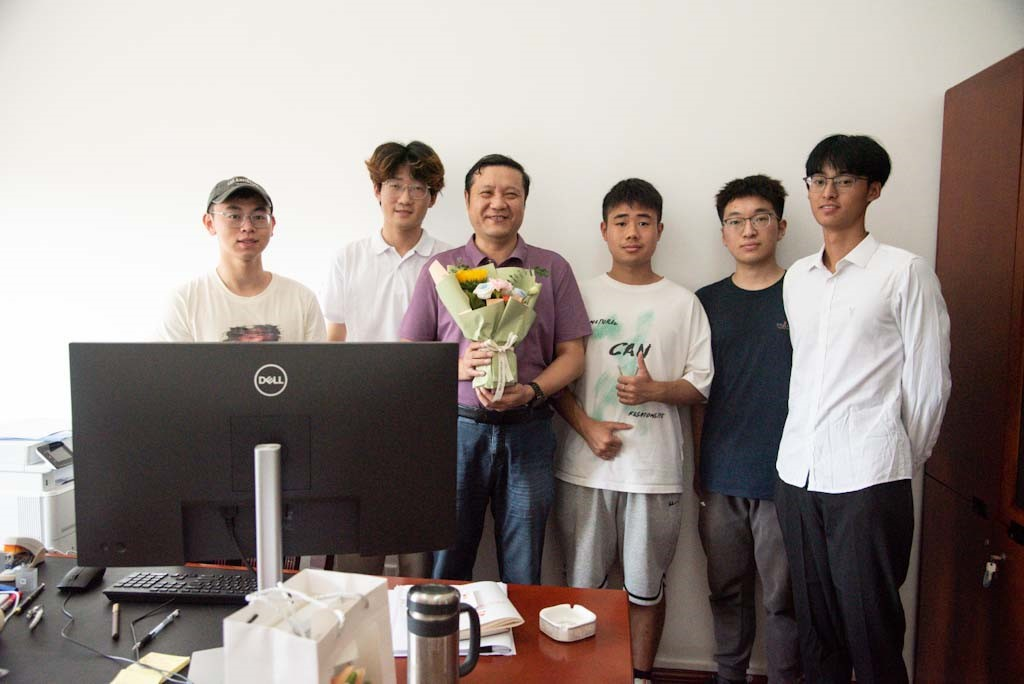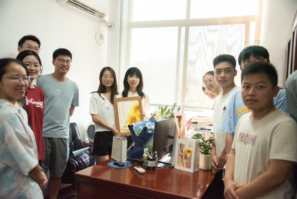 除在三一大楼下为老师们送上鲜花与祝福外,同学们来到院科研楼为在院办公的领导老师送上节日祝福。