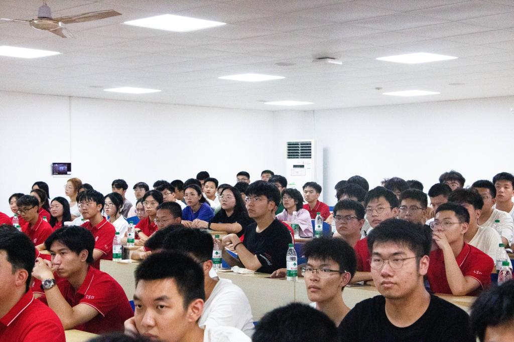 紧接着,毕鑫、刘松旭、李旻希同学作为老生代表依次上台分享。大一学年加权平均成绩年级第二名的毕鑫同学,向大家分享了许多实用的学习经验;刘松旭同学结合自身经历,鼓励大家多多参与学科竞赛;李旻希同学以院分团委学生会的工作为例,向大家介绍了学生工作的相关经验。