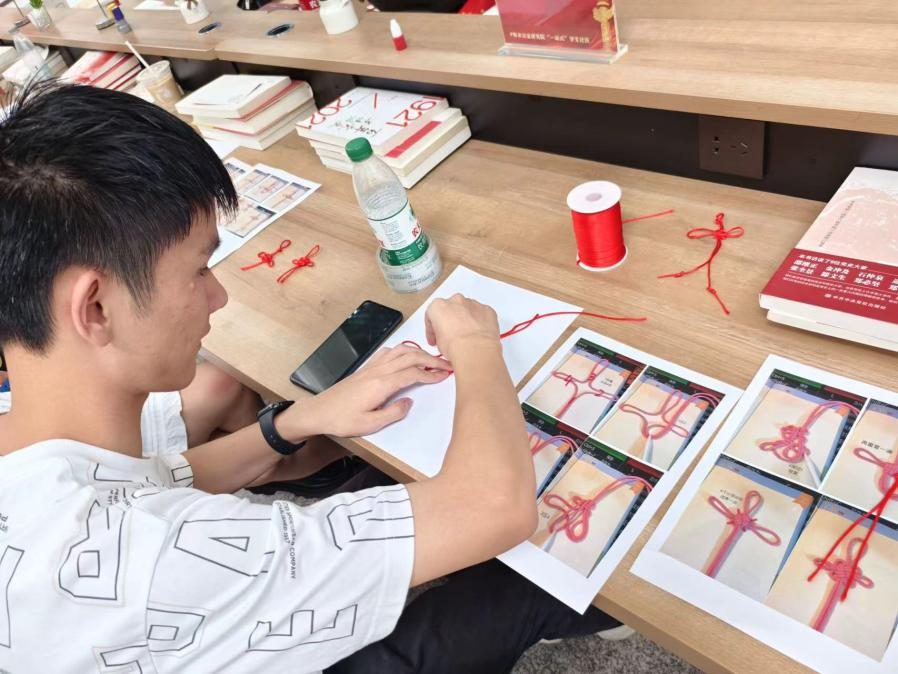 活动中,在文体部同学的带领下,大家拿起红绳,细心编织,从最基础的结法学起,逐步掌握了编织中国结的技巧,一个个寓意吉祥、造型精美的中国结逐渐成形。这一过程不仅让师生们体验到了传统手工艺的乐趣,更是向年轻一代传递了中国结所蕴含的和谐与祝福的美好寓意。