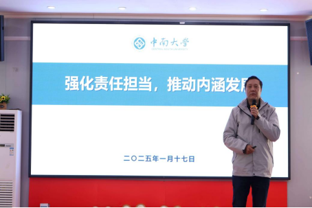 在学科建设、师资队伍、科学研究、人才培养等方面均取得了卓越成效:学科ESI全球排名首次进入世界前万分之一,新增国家级领军人才2人,以第一单位在《Science》上发表论文,粉末冶金全国重点实验室顺利通过优化重组等,开创了各项事业蓬勃发展的新局面。同时,张斗院长深入分析了当前面临的机遇与挑战,明确了2025年的工作目标和重点任务,并引用习近平总书记的新年贺词“梦虽遥,追则能达;愿虽艰,持则可圆”作总结,鼓励全体教职工再接再厉,奋力拼搏,为必赢亚洲
