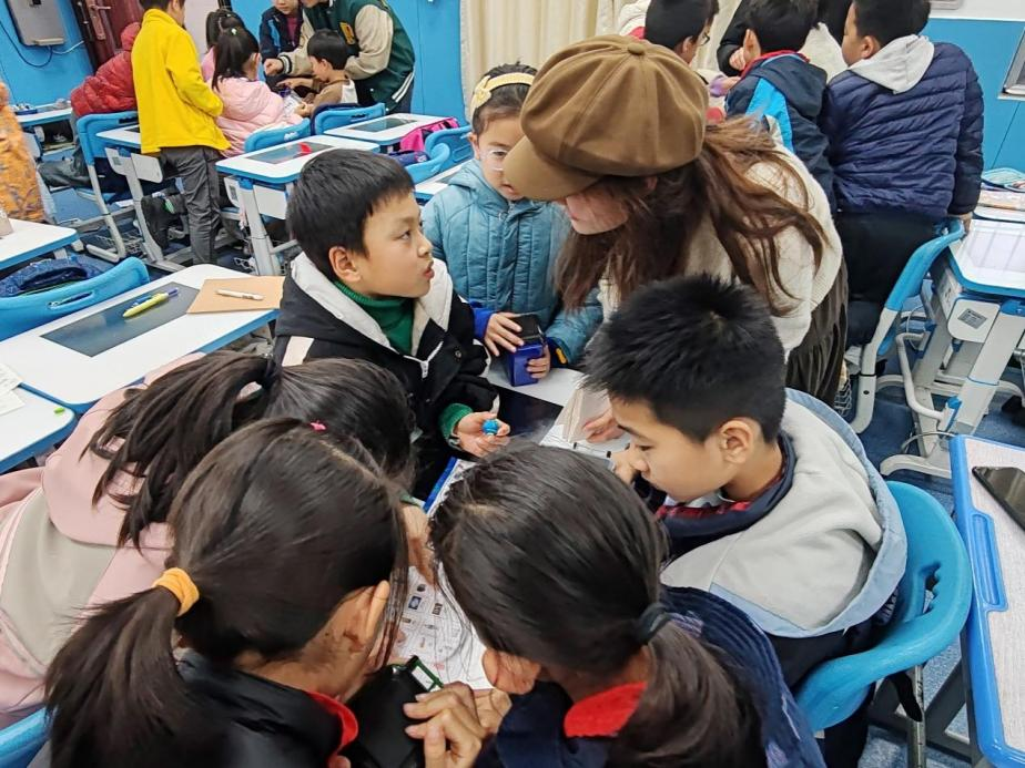 在互动环节,孩子们热情积极,课堂活跃生动。“厨余垃圾可以发电吗?”“垃圾是怎样被回收的?” 面对孩子们一连串的问题,志愿者们不仅耐心解答,还借助“四色垃圾桶模型”、“垃圾分类小卡片”等道具,设计了趣味实践环节,帮助孩子们巩固自己的学习成果,在趣味互动中体会垃圾分类中蕴含的的科学精神。一位小朋友兴奋地说:“原来牛奶盒要洗干净才能回收,我以后要做班级的垃圾分类监督员!”