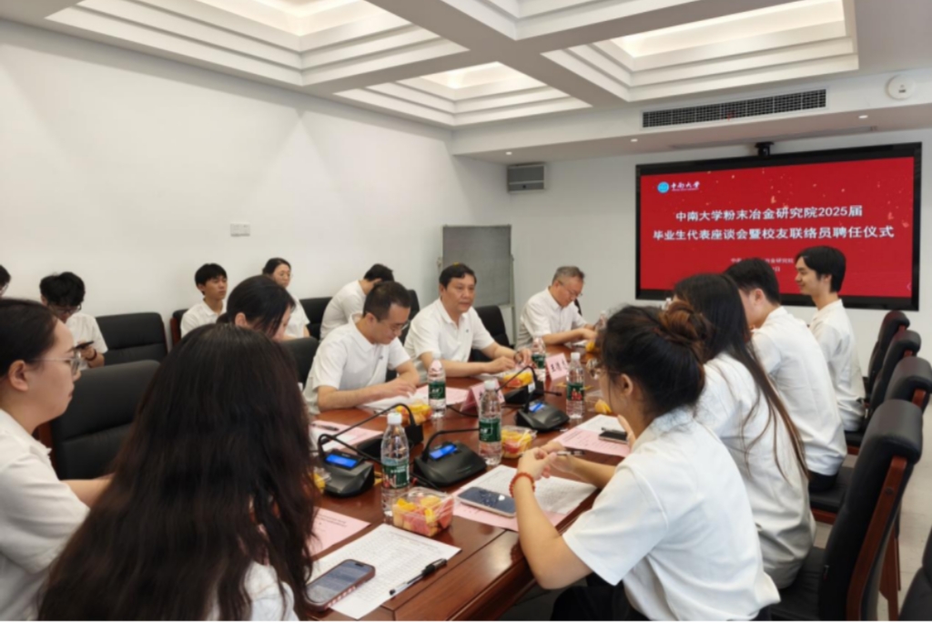 随后,粉冶院2025届毕业生代表座谈会暨校友联络员聘任仪式在三一大楼举行。会议由院学生工作办公室副主任张翠主持。