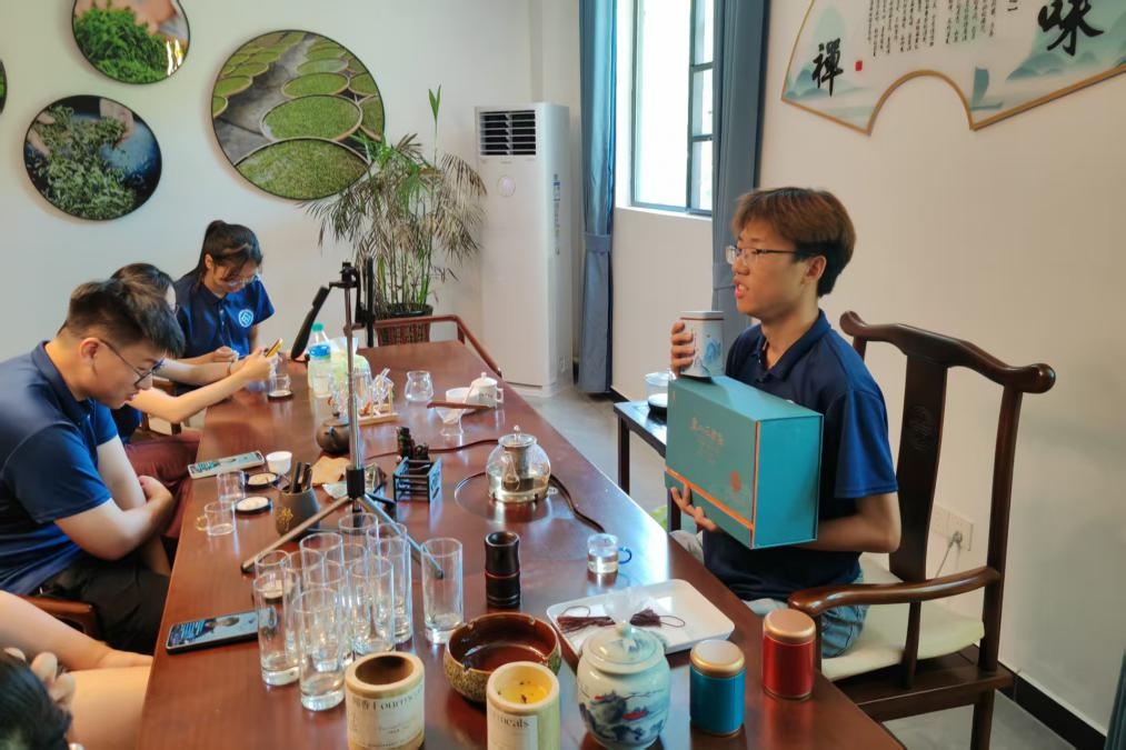 实践期间,团队成员走进当地制茶工坊近距离观摩了摊晾、杀青、揉捻、烘干等传统制茶工艺。在茶工坊工作人员的指导下,刘启立、陈启凡等同学亲身体验了洗茶、泡茶等环节。