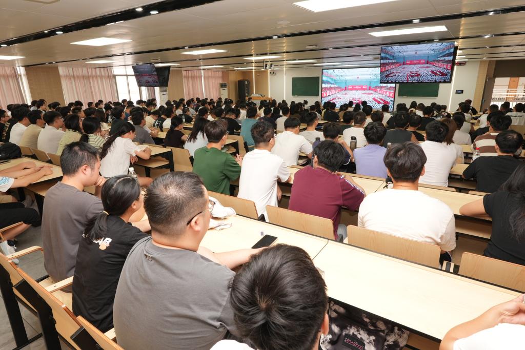 开学典礼通过转播主会场形式同步进行,到场新生与主会场同步肃立奏唱国歌,郑重佩戴校徽,在庄重的仪式教育中深刻体会入学的神圣意义,也切实感受到学校对全体新生的殷切期许。转播结束后,粉冶院研究生入学教育会正式启动,会议由院学生工作办公室副主任张翠主持。