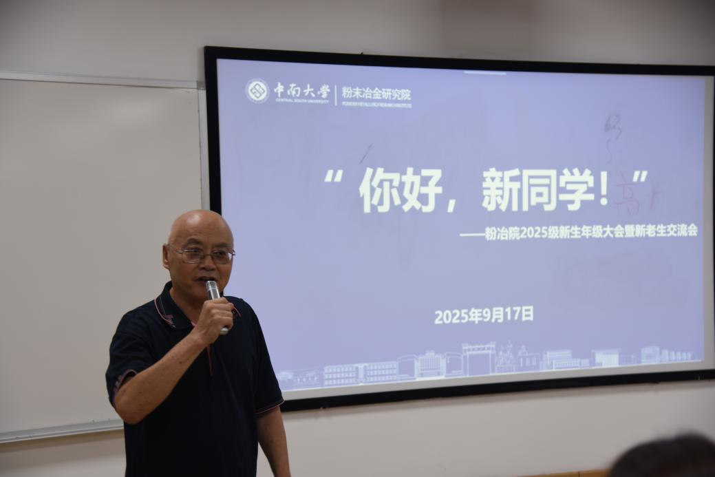 岳麓山校区科教南楼302室举行2025级本科生年级大会暨“薪火相传 圆梦粉冶”新老生交流会。粉冶院“五老”辅导员姜国华、2025级本科生辅导员于旻澍出席会议。