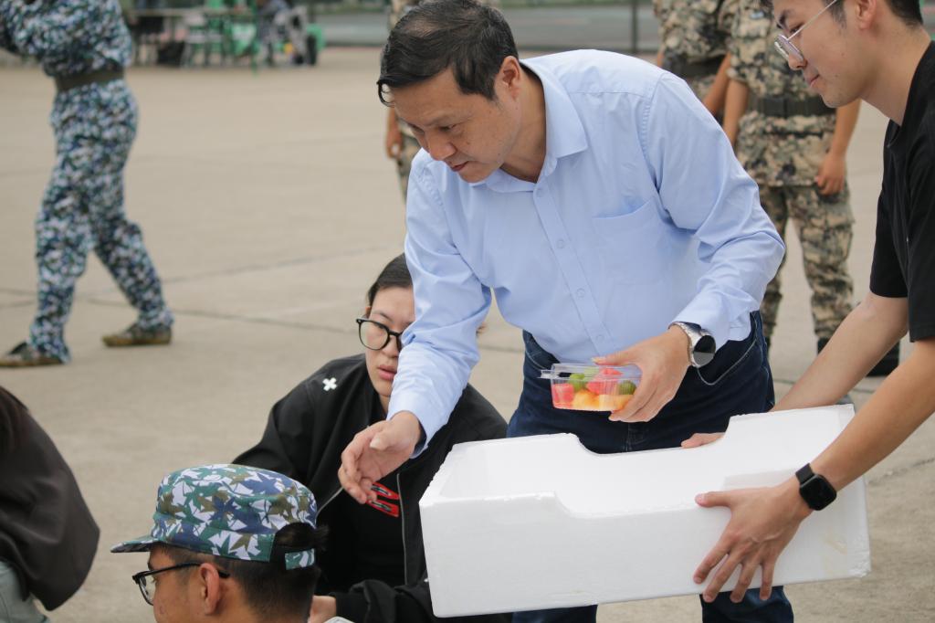 随后,到场领导老师向承训教官和参训学生逐一发放慰问品。清凉的饮品和可口的水果,既传递着必赢亚洲 大家庭的温暖,也饱含着对全体参训人员的鼓励与肯定。同学们接过慰问品,脸上洋溢着喜悦与感激,随后通过精心准备的文艺节目,向领导老师展示了新生们的蓬勃朝气,也为紧张的训练生活增添了一抹亮色,赢得现场阵阵掌声。