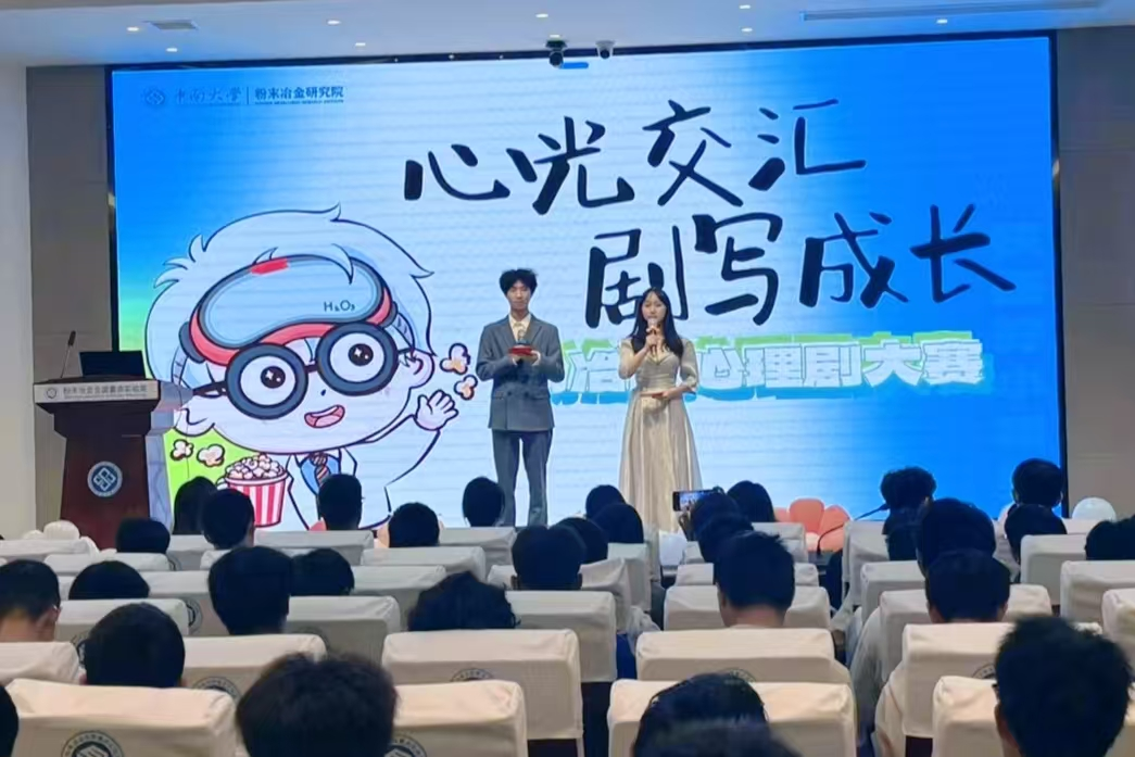 本次比赛教师评委团由心理健康中心熊燕、粉冶院学工办副主任张翠、材料院辅导员张彦隆、粉冶院2025级本科生辅导员于旻澍组成;学生评委团由新青年话剧团团长张涵悦、2024年心理短剧大赛冠军队伍负责人李欣怡、亚军队伍负责人杨皓元组成;大众评审团由各参赛队伍代表组成。比赛伊始,主持人葛明濮和淦子彤为大家介绍了参赛规则以及评分标准。