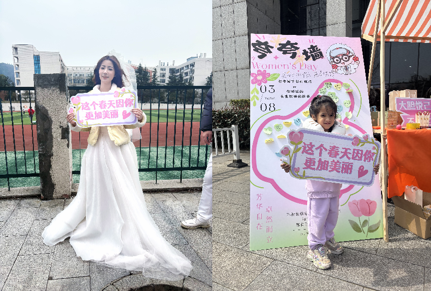 现场设立的“夸夸”墙互动区反响热烈,吸引了众多师生踊跃参与,他们通过便签分享个人成长感悟,讲述身边优秀女性的奋斗故事。文字间传递的不仅是赞美,更是女性群体间相互扶持、自信自强的精神共鸣。活动还设置了惊喜好礼抽奖环节,参与互动即可赢得精美礼品,进一步提升节日幸福感。