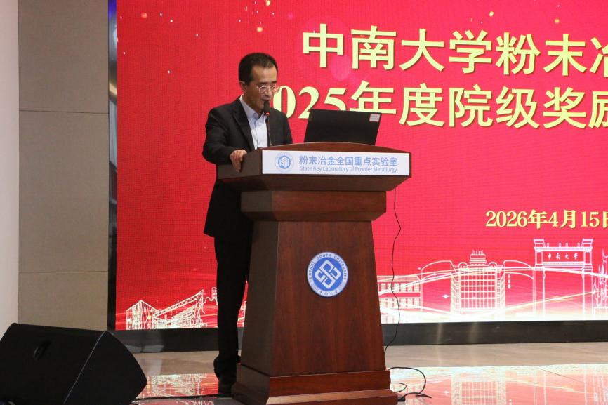 随后,厦门金鹭特种合金有限公司总经理孙东平作为设奖企业代表上台发言。他向获奖师生致以热烈祝贺,并对研究院在粉末冶金领域长期积淀的深厚实力与育人贡献表达敬意。他表示,设立奖励金不仅是对优秀学子的激励,更是企业履行社会责任、助力行业人才培养的重要举措。希望同学们在仰望科技前沿的同时,也能俯身精进实干,把专业学透、把眼界打开,早日成长为支撑行业发展的中坚力量。