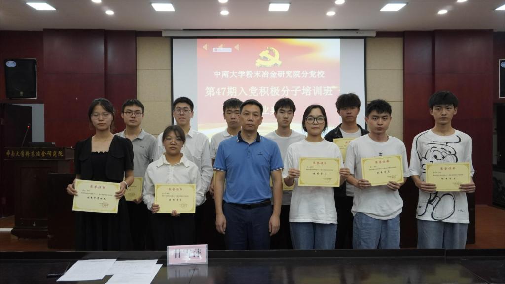 分党校第47期入党积极分子培训班结班典礼在粉冶院工程会议中心举办。粉冶院副院长、分党校副校长甘雪萍,培训班班导师贺林豪以及全体学员参加了此次结业典礼。结业典礼由贺林豪老师主持。