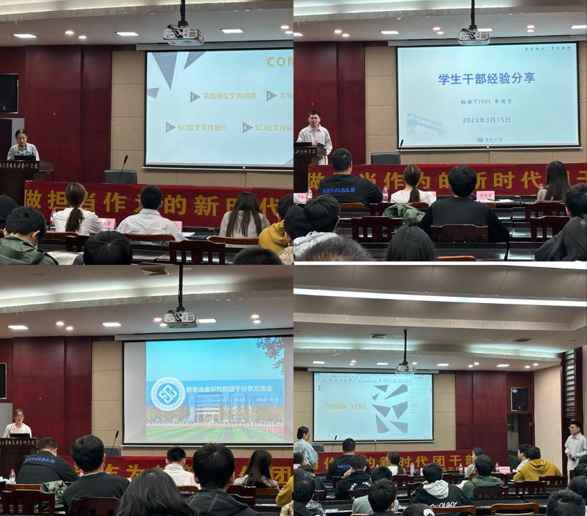 团委主办的以“时代青年强担当,砥砺奋进铸团魂”为主题的系列活动之团干风采展在粉冶院工程会议中心顺利举行。此次活动邀请到六位优秀团干代表,围绕科研学术、学术保研、学生工作、朋辈互助、志愿服务、学科竞赛等主题进行经验分享和交流。现场气氛活跃,活动受到同学们的一致好评。