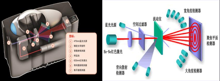 颗粒在激光衍射光束照射下,会产生衍射,其衍射光的角度与颗粒的粒径相关,颗粒越大,其衍射光的角度越小;颗粒越小,其衍射光的角度越大,即不同粒径的粒度所衍射的光会落在不同的位置,反过来说,衍射光的位置反映出粒径大小。通过适当的光路配置,同样大的粒子所衍射的光会落在同样的位置上,所有叠加后的衍射光的强度反映出粒子所占的相对多少。因此,只要能测出衍射光的位置信息,就可以通过计算知道粒子的粒度分布。